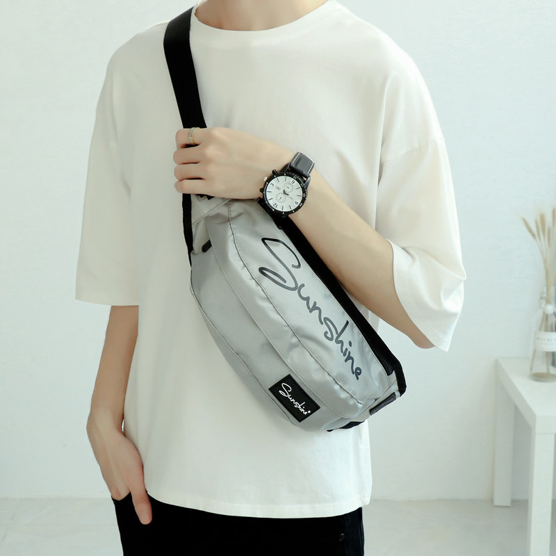 Pocket Men's Chains Men's Shoulder Bag Single Shoulder Diagonal Satchel Canvas Casual Teen Chest Bag Han Edition High School Students