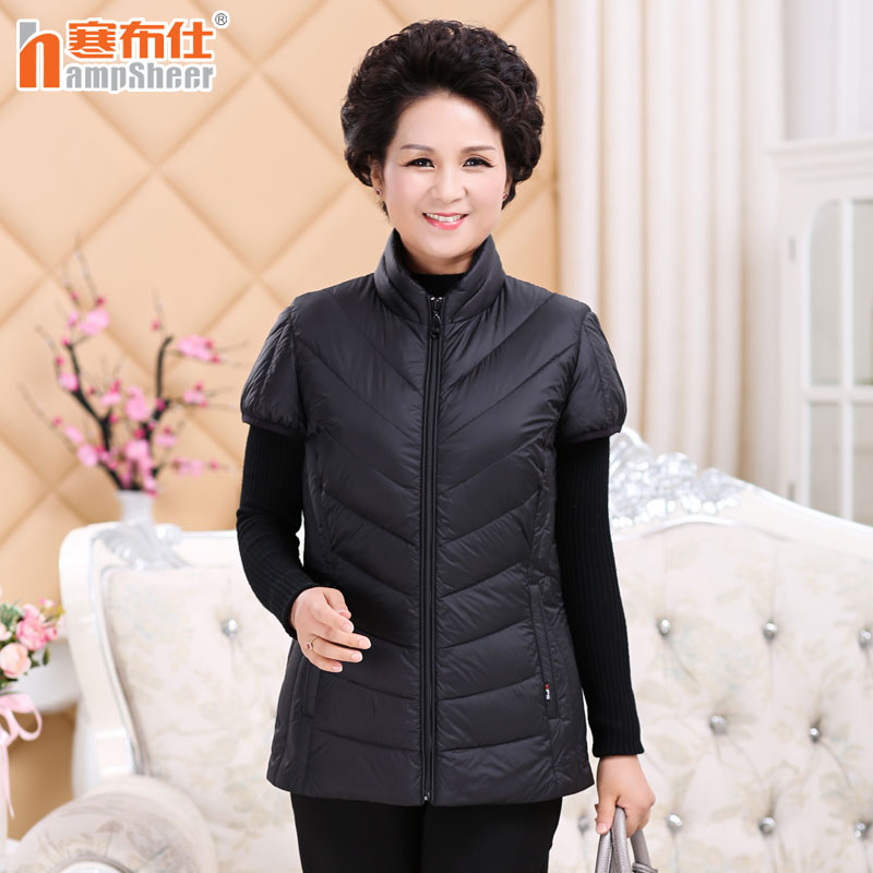 Cold Brsee ladies down short sleeve waistcoat autumn winter mid old age big code outwear Duck Suede Warm Vest Waistcoat-Taobao