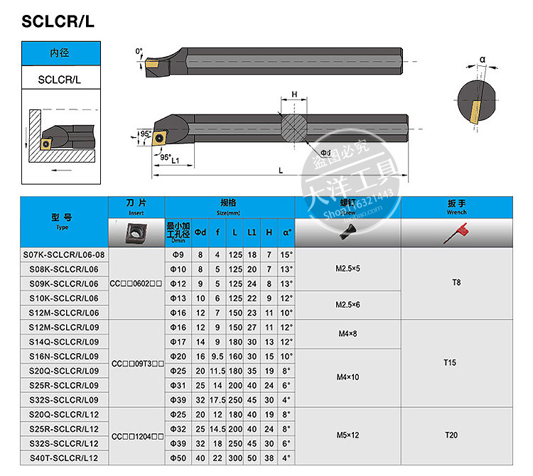 Inner hole knife 95 degree boring knife diamond shape SCLCL 12 S20 25 32 40 50