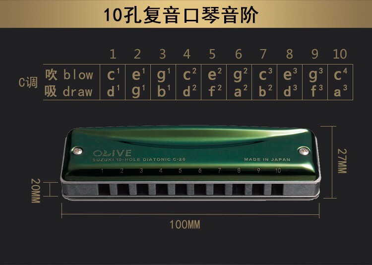 Suzuki blues harmonica C20 harmonica ten-hole harmonica cool brother steel gun blues harmonica