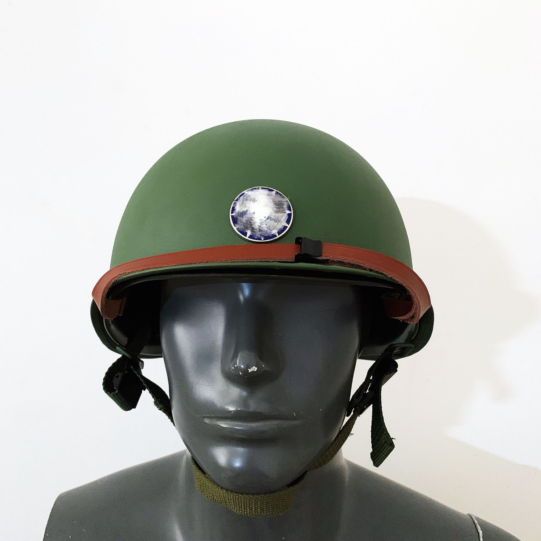 The American M1 of the Anti-Japanese War Army has a metal enamel hat emblem steel helmet