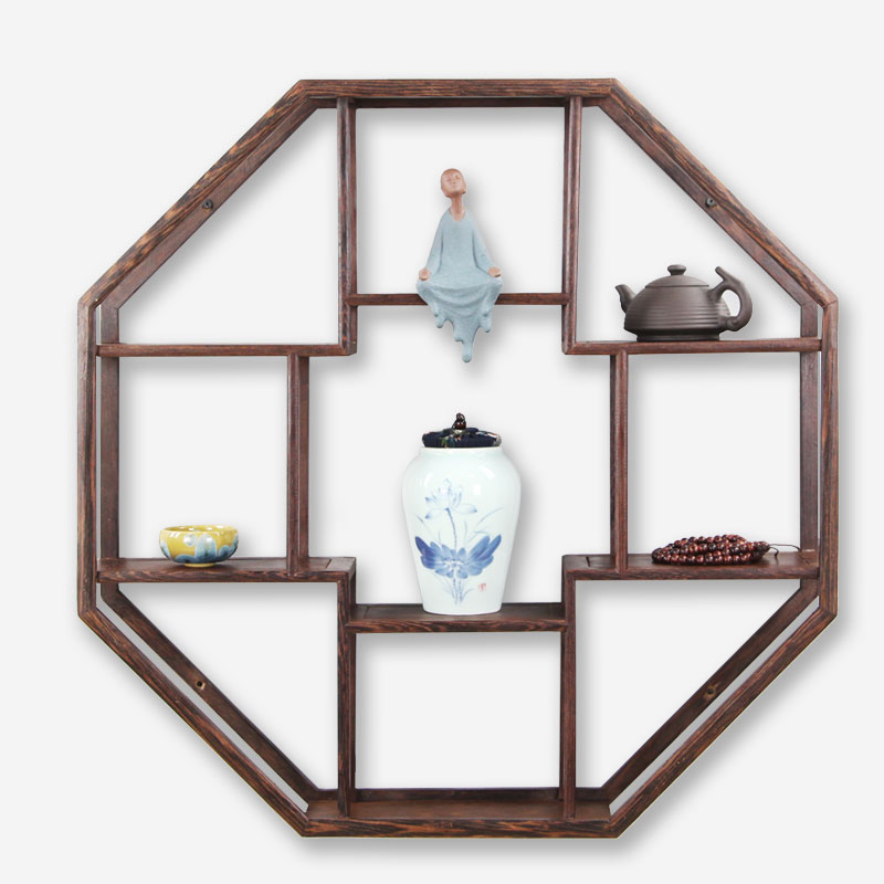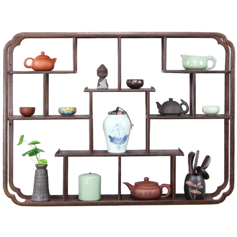 Room decoration wall shelf ins style home wall storage shelf solid wood Chinese wall partition wall hanging