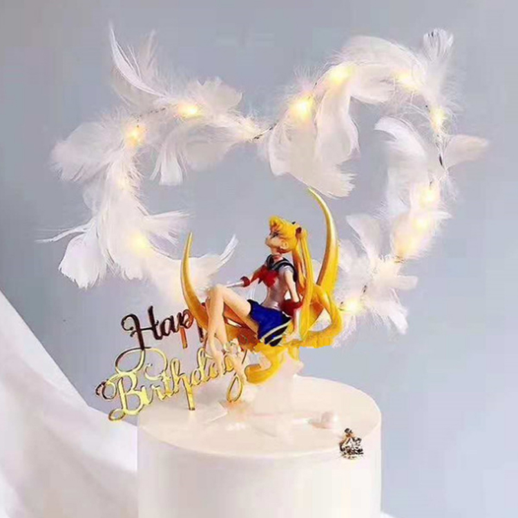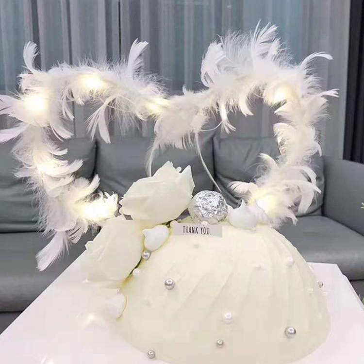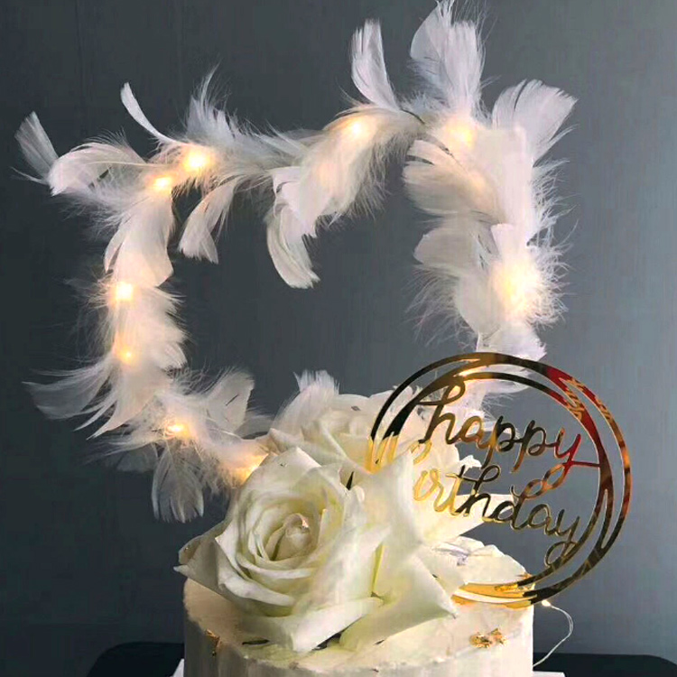 Net red white feather plug-in meritocratic romantic cake decoration birthday party sweet taster baking dotted with supplies