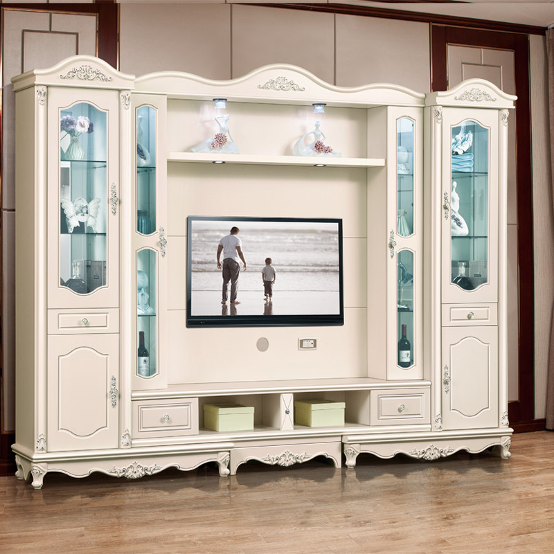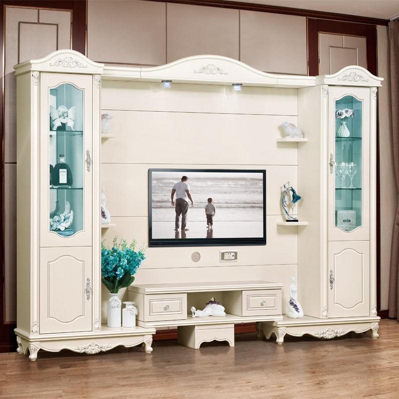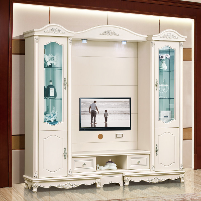 French European style drawing silver stretch TV combination background wall TV wall combination cabinet TV cabinet multi-function cabinet