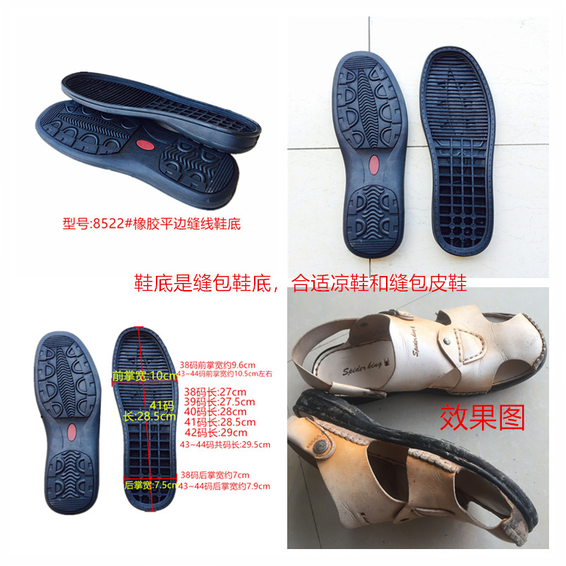 Male Sewn Foreskin Sole Casual Shoes Hook Line Sole Flat Edge Wire Bottom Rubber Large Base Sandals Wear and anti-slip