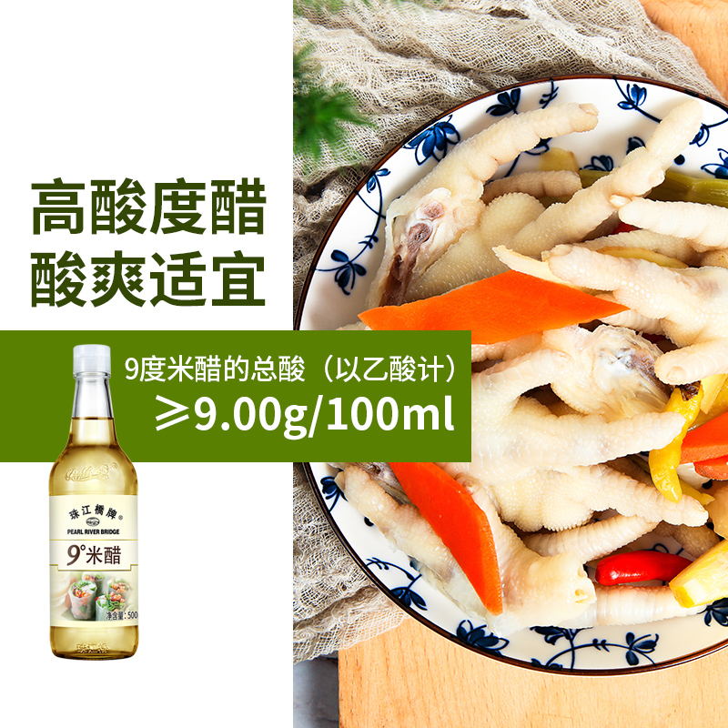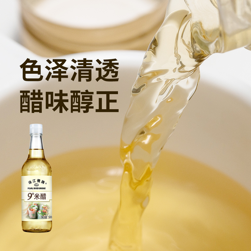 Pearl River Bridge brand 9 degrees rice vinegar edible bubble garlic 500ml * 4 Authentic pure grain brewing nine degrees white vinegar household 9℃
