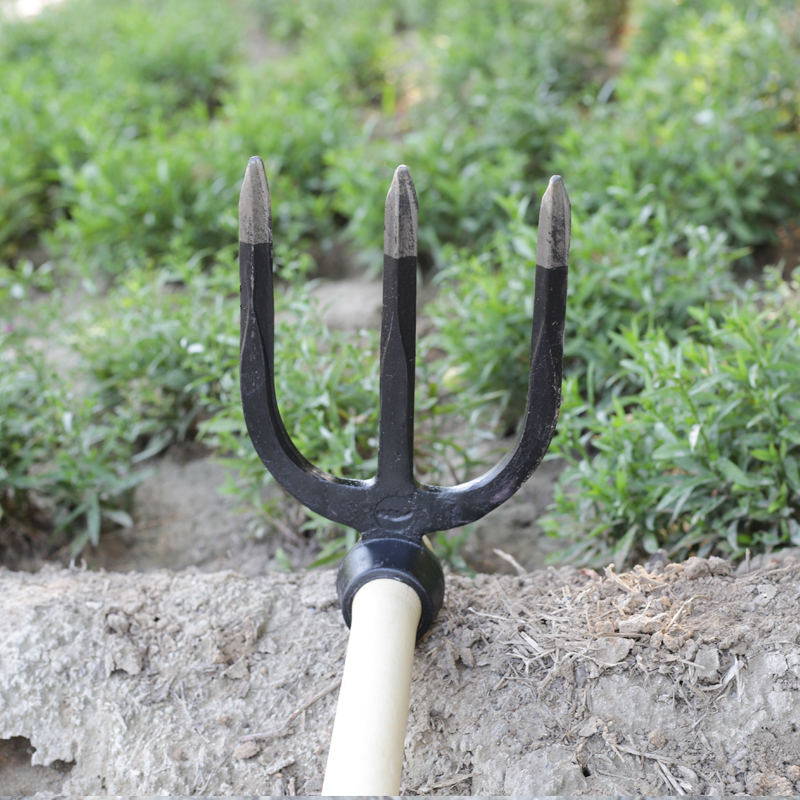 Forged and integrated three-tooth harrow (with short handle) small number three-tooth fork hoe three-teeth fork hoe four-teeth fork hoe small number three-teeth fork hoe 85cm wood handle three-teeth fork hoe 90cm-grade wooden handle four-teeth fork hoe 90c