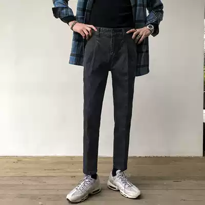 South Korea Dongdaemun casual jeans men's black loose straight slim trousers youth Korean trend men's pants