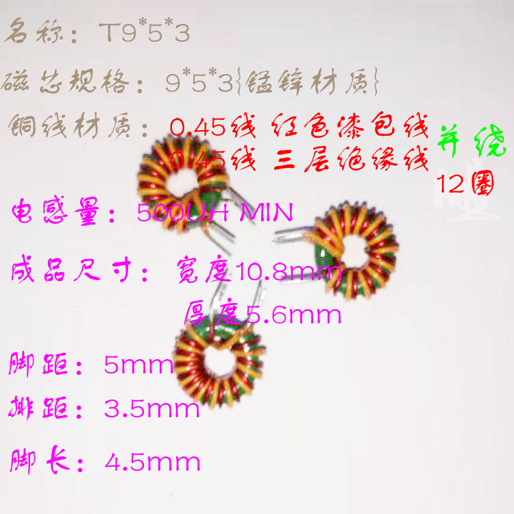 High frequency common mode inductor T9 * 5*3 0 45 wire unique and wound 12 turns 500UH 3A inductor