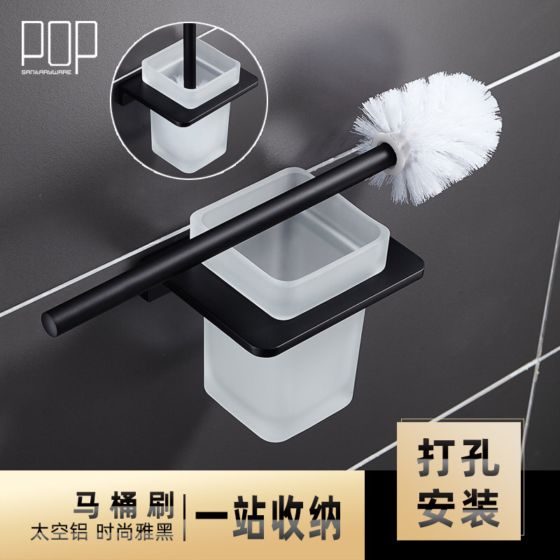 POP non-perforated toilet brush holder black toilet brush holder set toilet bathroom toilet brush holder powder room wall hanging