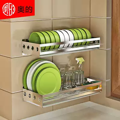 304 stainless steel non-perforated kitchen rack wall-mounted Bowl plate seasoning storage layer rack wall-mounted dish drain rack
