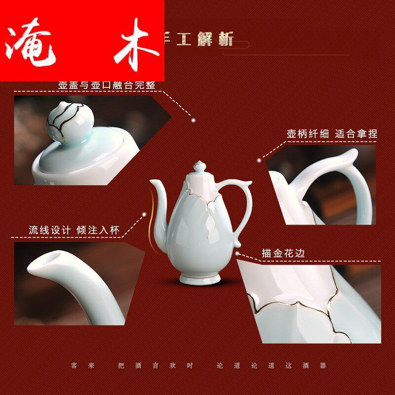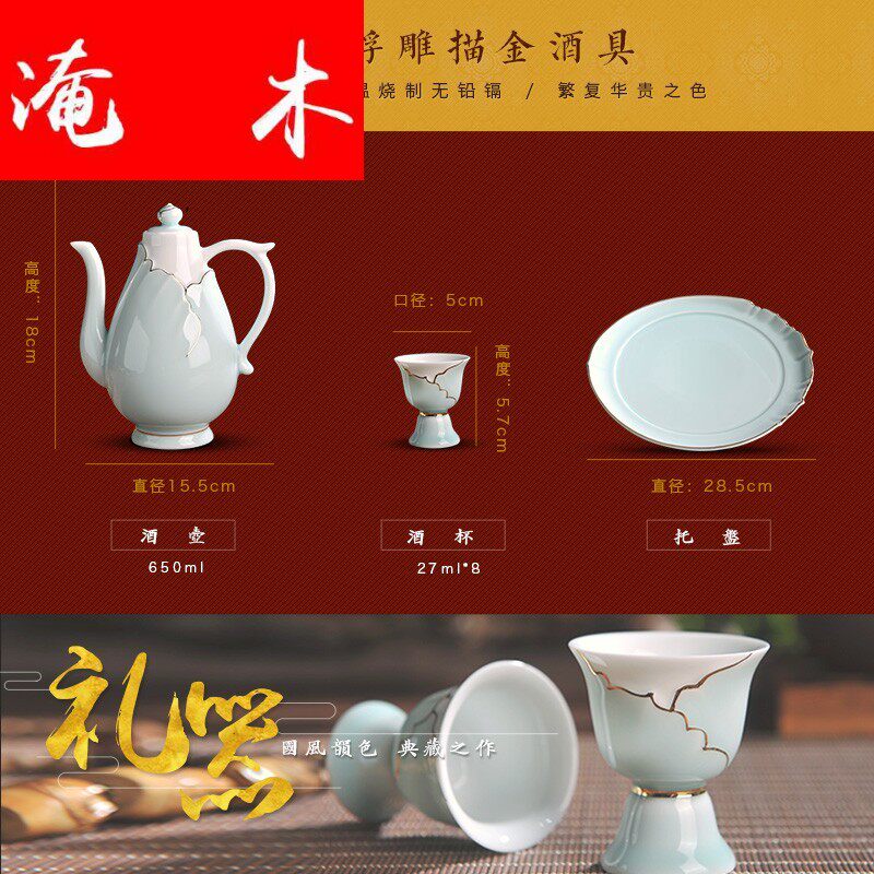 Flooded wood Jingdezhen ceramic ware antique white wine wine with shaded relief suit for home wine pot liquor mug kit-Taobao