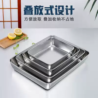 Borderless stainless steel plate Rectangular pure flat bottom narrow side straight side square plate Food cooked food braised dish tray display plate