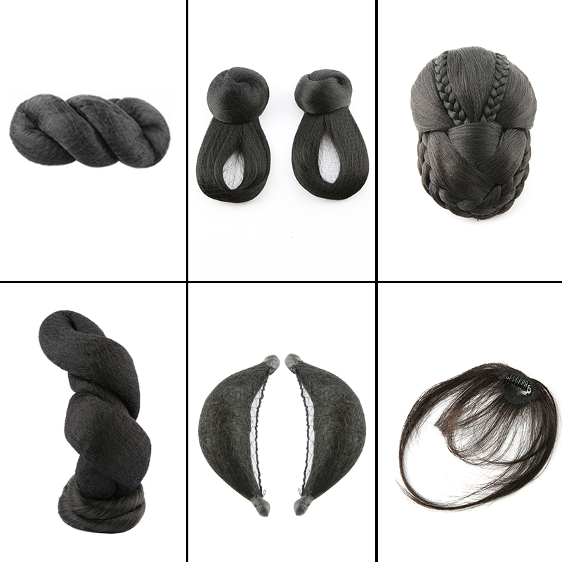 Black 052B flower bone hair bag black 052Y flower bone hair bag black 110B small black pad hair plate black chemical fiber bangs black real hair air bangs black snake bun large size about 2