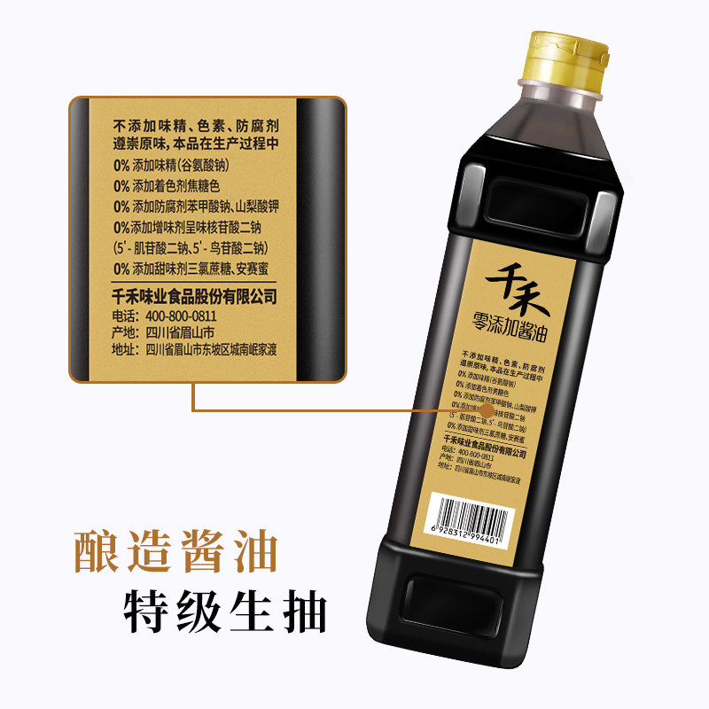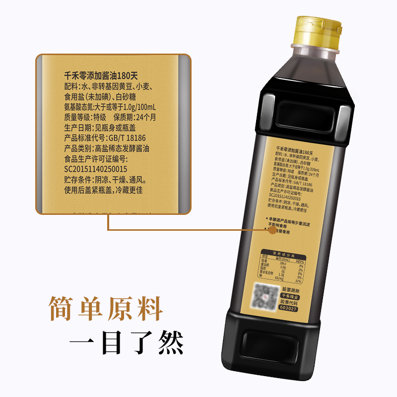 (Qianhetou Road Original Fragrance 180 Days) No MSG Premium Homemade Soy Sauce Zero Add Soy Sauce Seasoning 1L