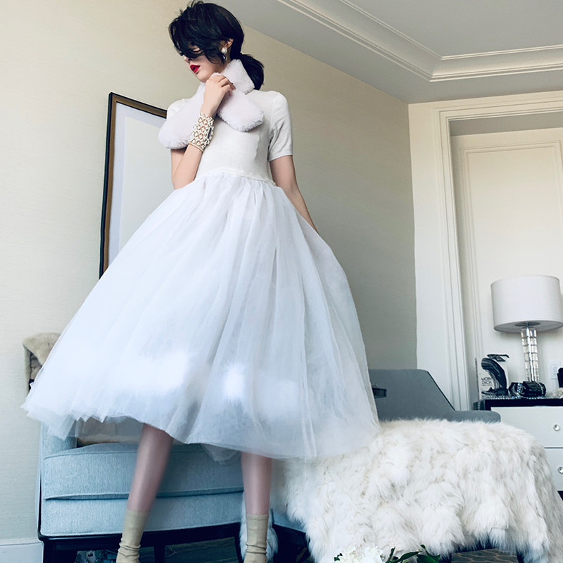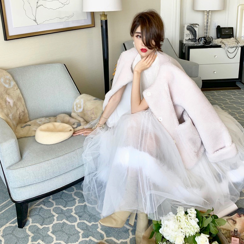 ALUONLINESHOP WOOL BLEND FAIRY TWO-PIECE DRESS FOR WOMEN HAIRY STITCHING HIGH-WAISTED SKIRT