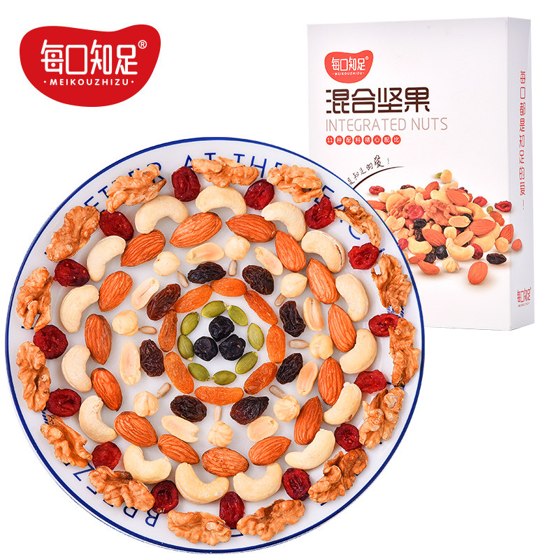 Each bite of Contented Mixed Nuts Daily Nut nuts Snowflake crisp nougat raw snack nuts 250g
