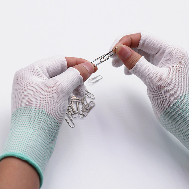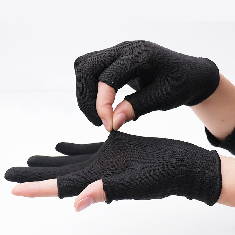 Gloves Labor insurance wear-resistant work gloves Driver work female white line work nylon thin half finger tea picking black