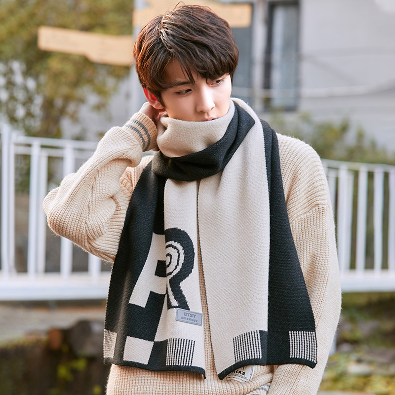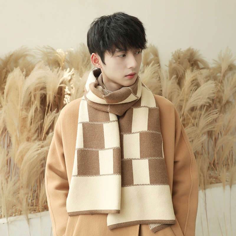 Scarves for men's autumn and winter Han prints 100 hitch a minimalist warm student Long version of the checkered Plaid Scarf Birthday boy