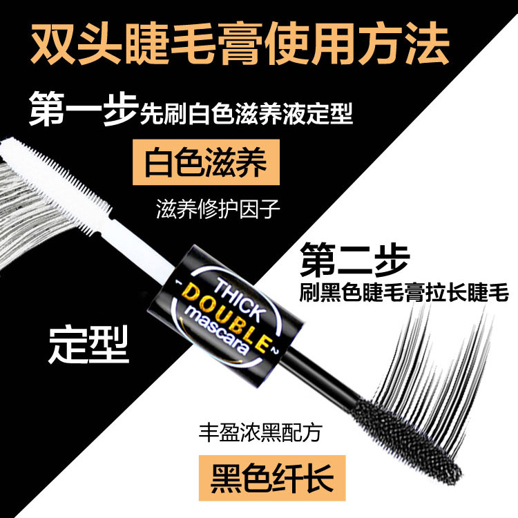Flarebird Velvet Bright double head mascara Both black and white dual-use waterproof fiber long roll up thick and dense without fainting
