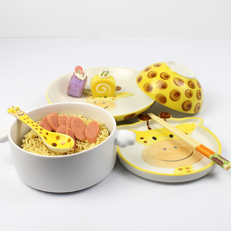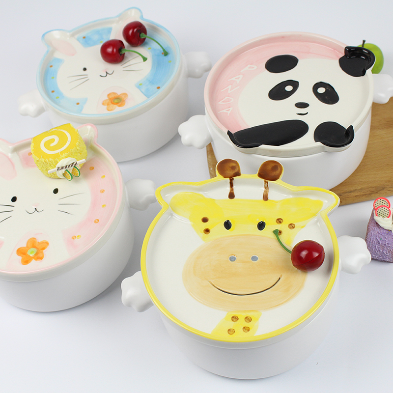 AMH Cartoon Cute Pattern Large Capacity Bubble Noodle Bowl Student Dormitory Suitable for ceramic material high temperature resistant and easy to clean