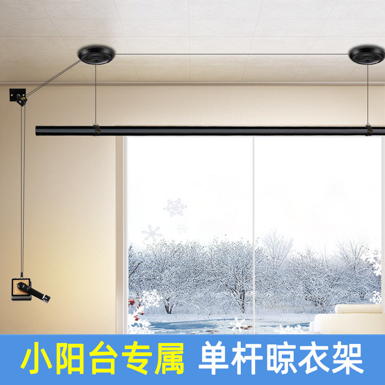 Lifting clothes rack single and double rod type black and white hand-cranked clothes rack Small apartment balcony drying clothes rack round rod installation