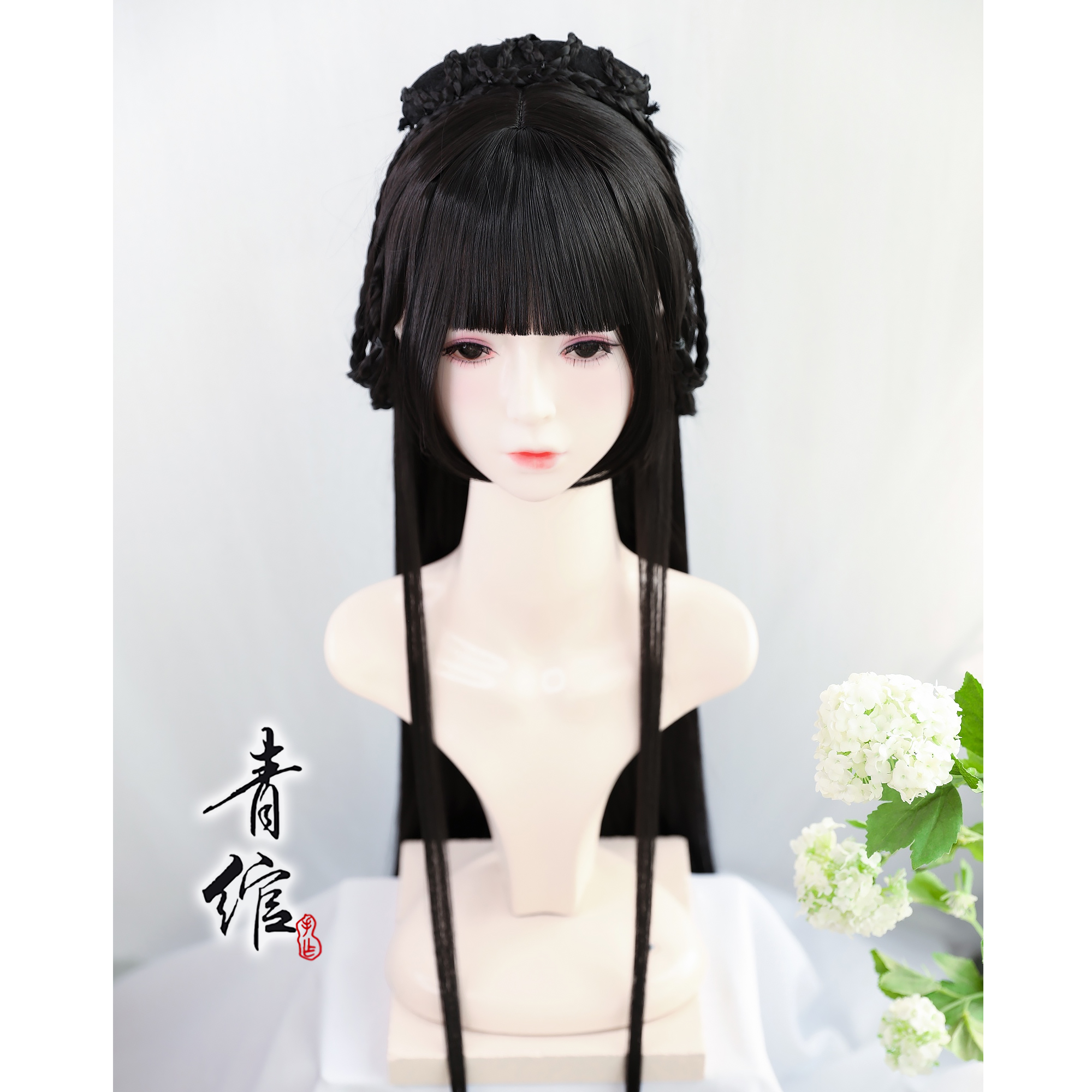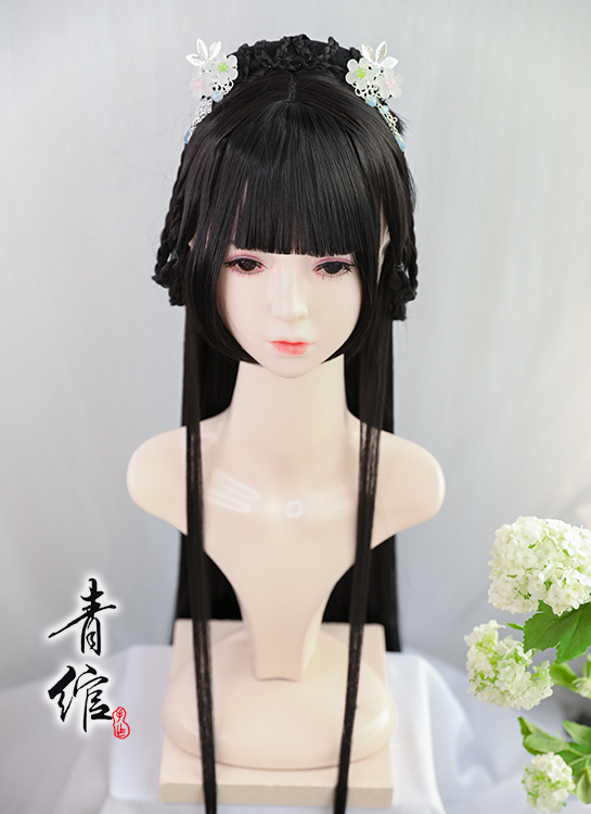 (Qing Wan) Hanfu skirt face repair wig headgear Ancient costume cos Wei Jin wind coat skirt Chinese wind wig