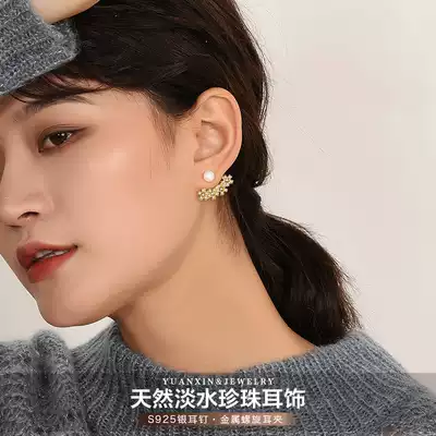 (925 silver needle ear needle) natural freshwater pearl stud (spiral ear clip) without ear hole