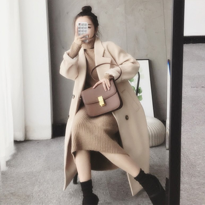 Pregnant Woman Sweater Women's Autumn Winter Medium Long Version Suit Winter Knit Undershirt Boomer Loose Foreign Dress Inner Lap