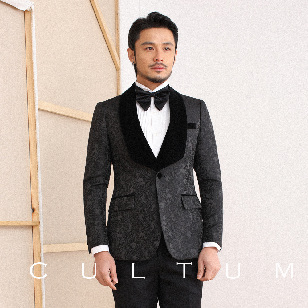 The velvet big size a grain button to fix the wedding banquet gown The male wedding groom embroidered printed western clothes with a single west tide