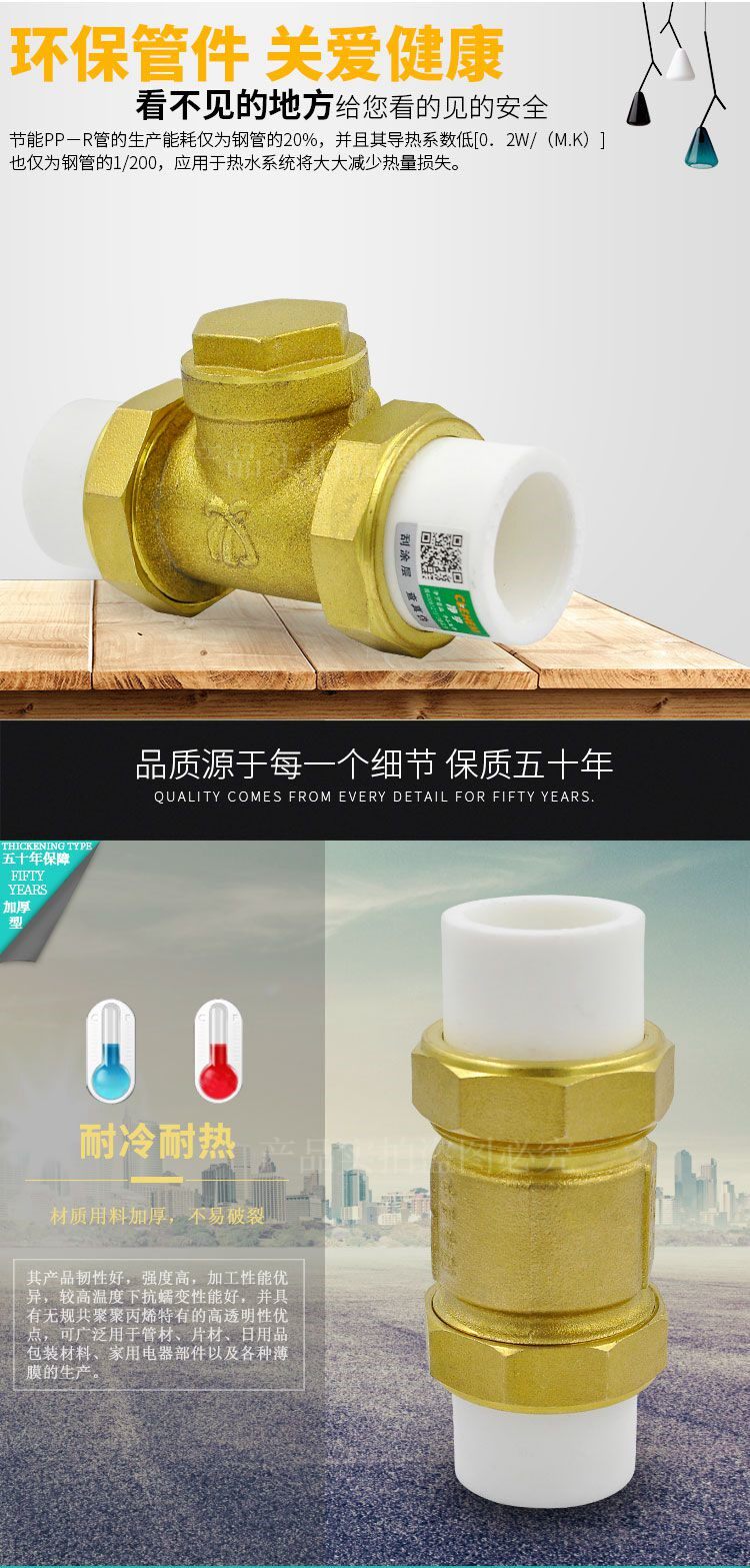 PPR check valve brass horizontal vertical check valve backstop valve PPR water pipe fittings fittings