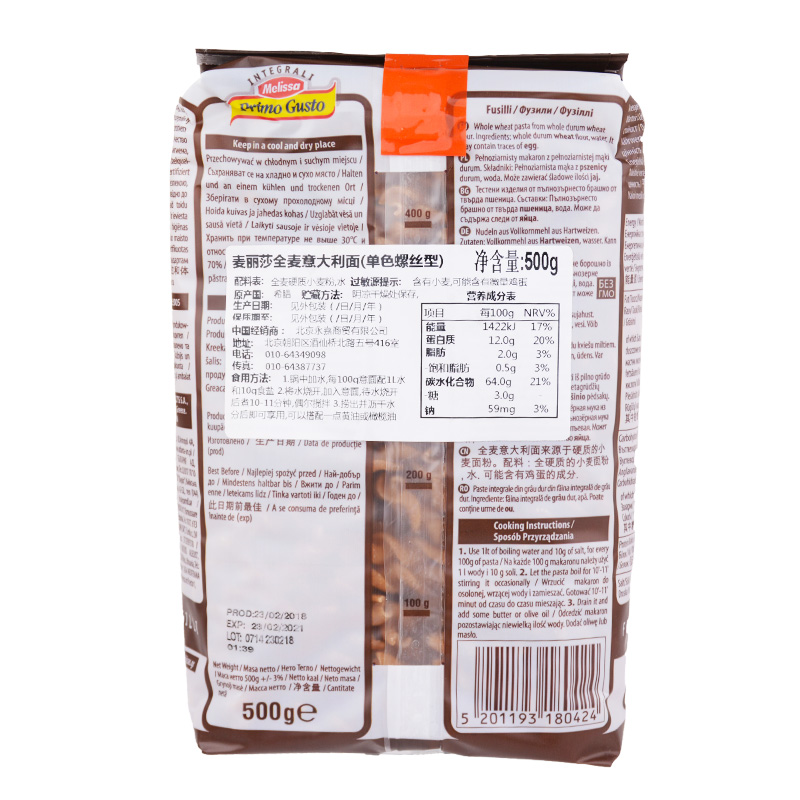 Melissa whole wheat pasta spirals pasta spaghetti spaghetti import italian pasta 3 packs home suit Fitness Substitute