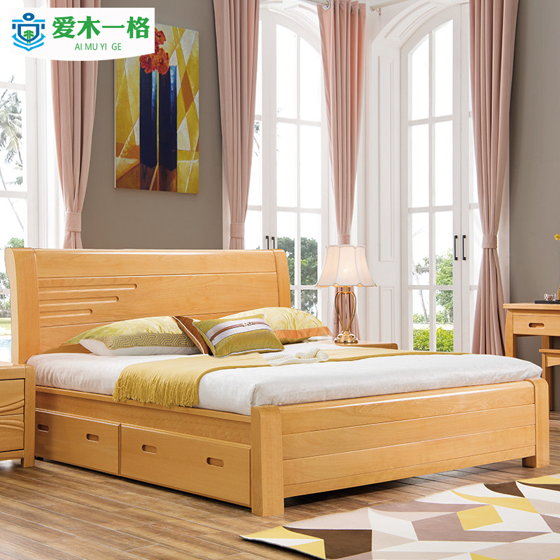 Beech Wood 1 5 m Solid Wood Bed 1 8 m Double Bed Modern Simple Chinese Wedding Bed Drawer Pneumatic High Case Containing Bed