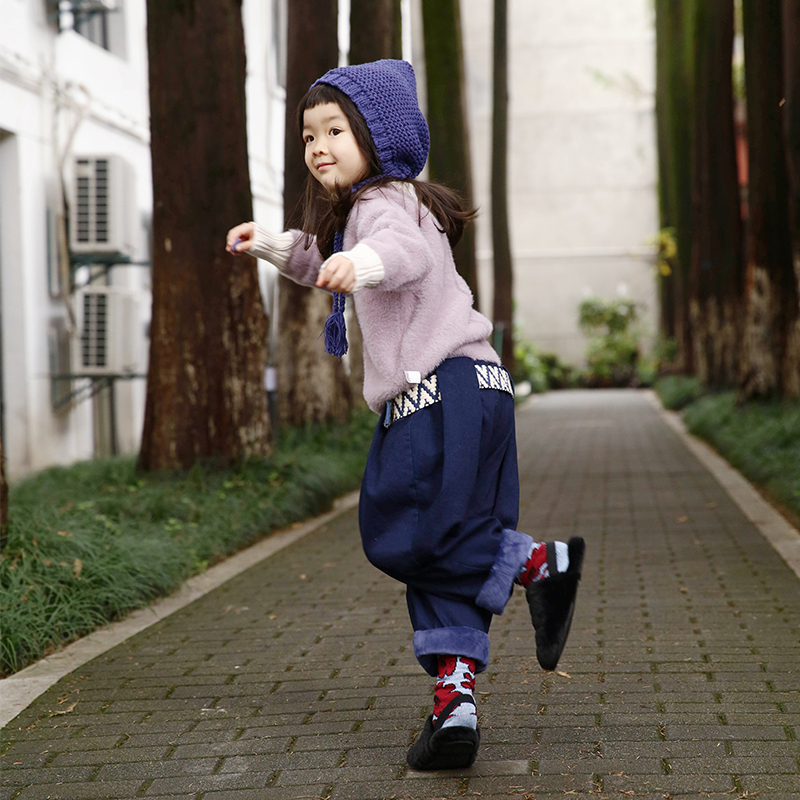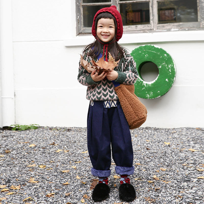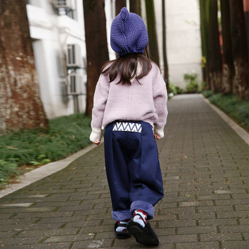 Li Xiaoxian girls winter woven belt decoration plus velvet robe pants children's Western style loose pants E84K1779