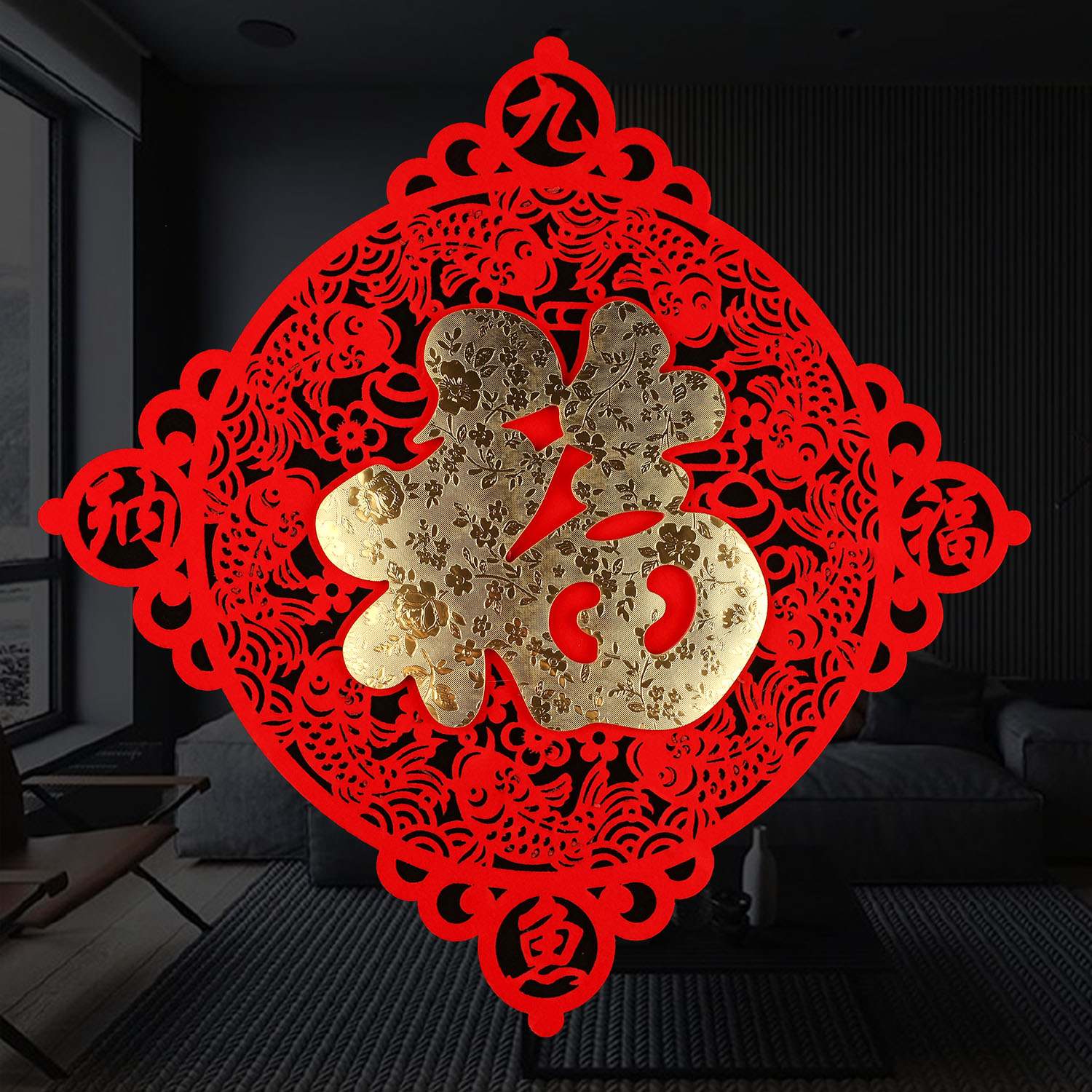 2021 Year of the Ox large three-dimensional blessing word door sticker Flannel window sticker New Year painting New Year Spring Festival self-adhesive creative customization