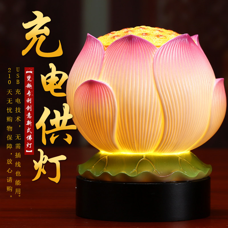 Sanskrit ceramic LED lotus lamp for lamp battery charge plug-in dual-use for Buddhist lamp Home Buddha Niche Long light