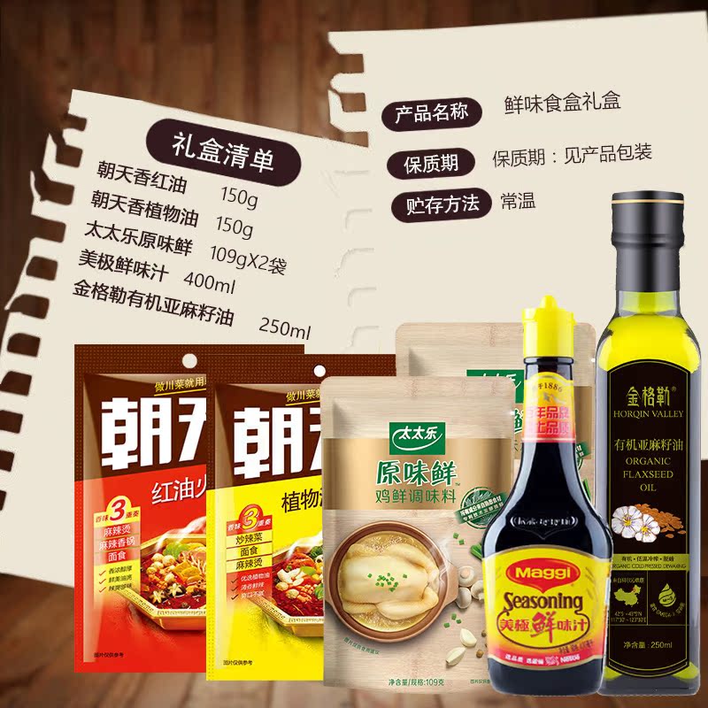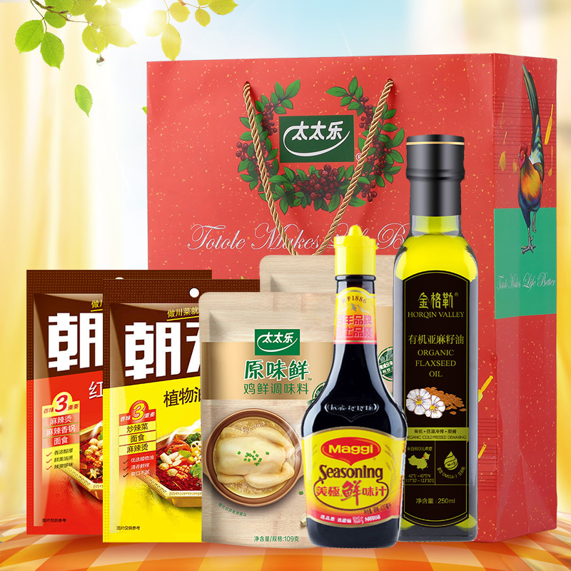 Fresh gift box combination gift-giving New Year's goods seasoning fresh-flavored flaxseed oil hot pot soup bottom affordable to send relatives and friends
