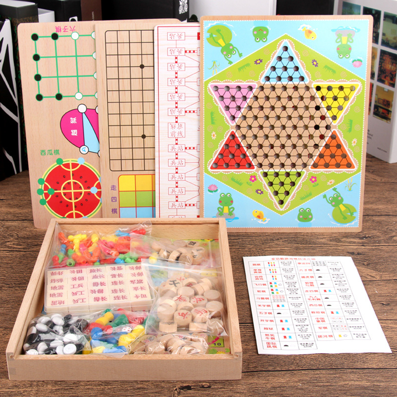 Wooden Children Adult Toys Puzzle Checkers Flying Chess Multifunction Flag Box Chess Game Chess 5 Dou Dou