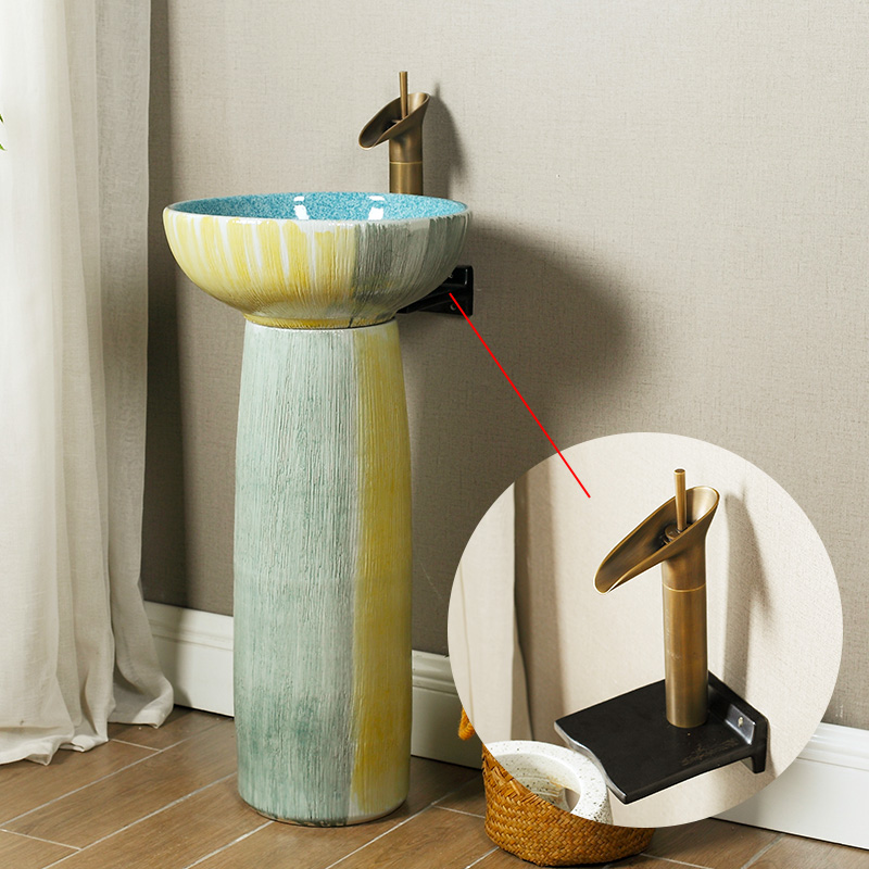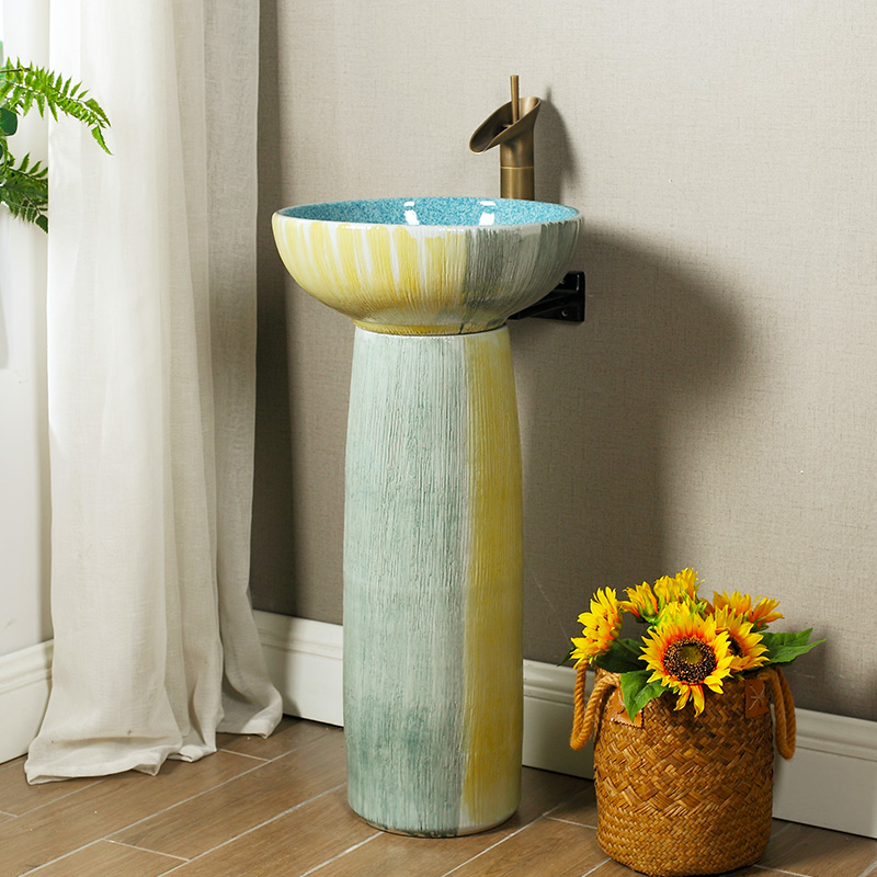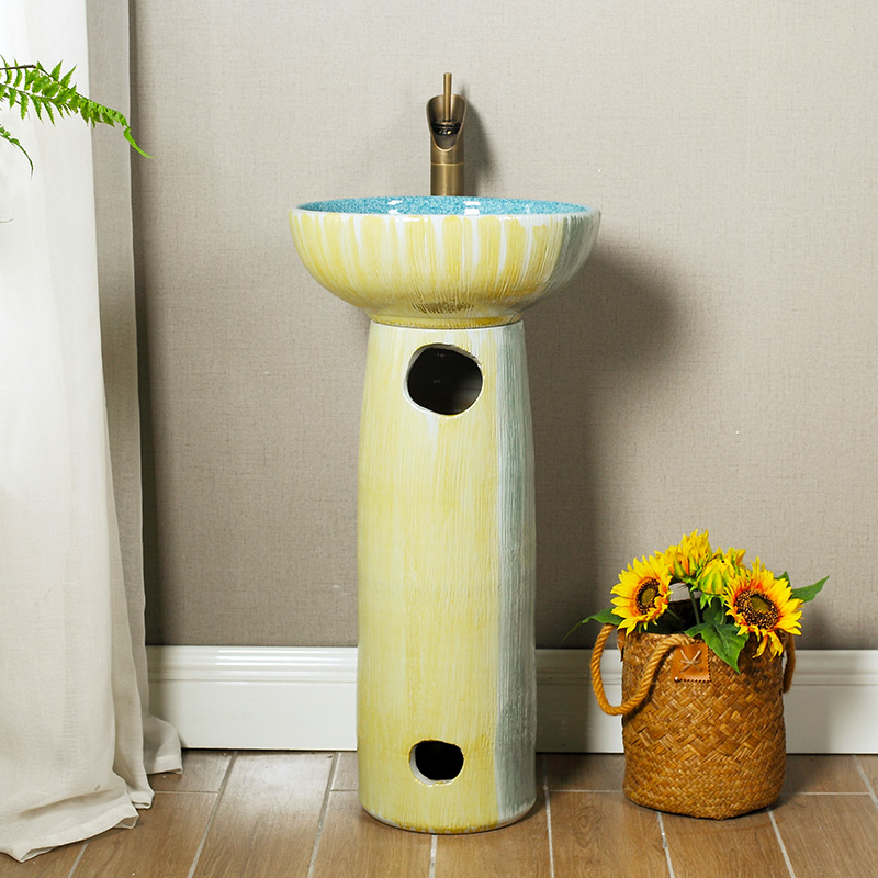 Wan Grandview Town Ceramics Upright basin Wash Ground Style integrated washbasin European-style Art basin Home washing face