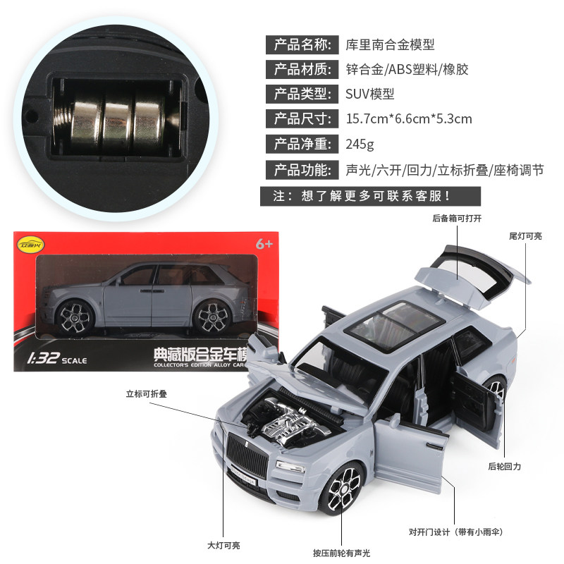 Rolls-Royce Cullinan alloy car model sound and light pull-back off-road vehicle boy toy simulation car model decoration