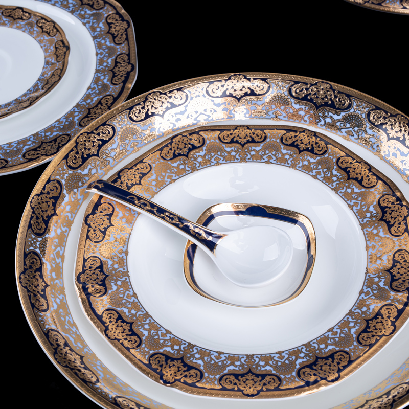 High-grade bone china tableware bowls and dishes set household European-style Jingdezhen ceramics Chinese-style bowls and plates chopsticks combination simple