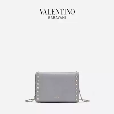 VALENTINO GARAVANI MS VALENTINO CLASSIC LIGHT GRAY ROCKSTUD CHAIN WALLET