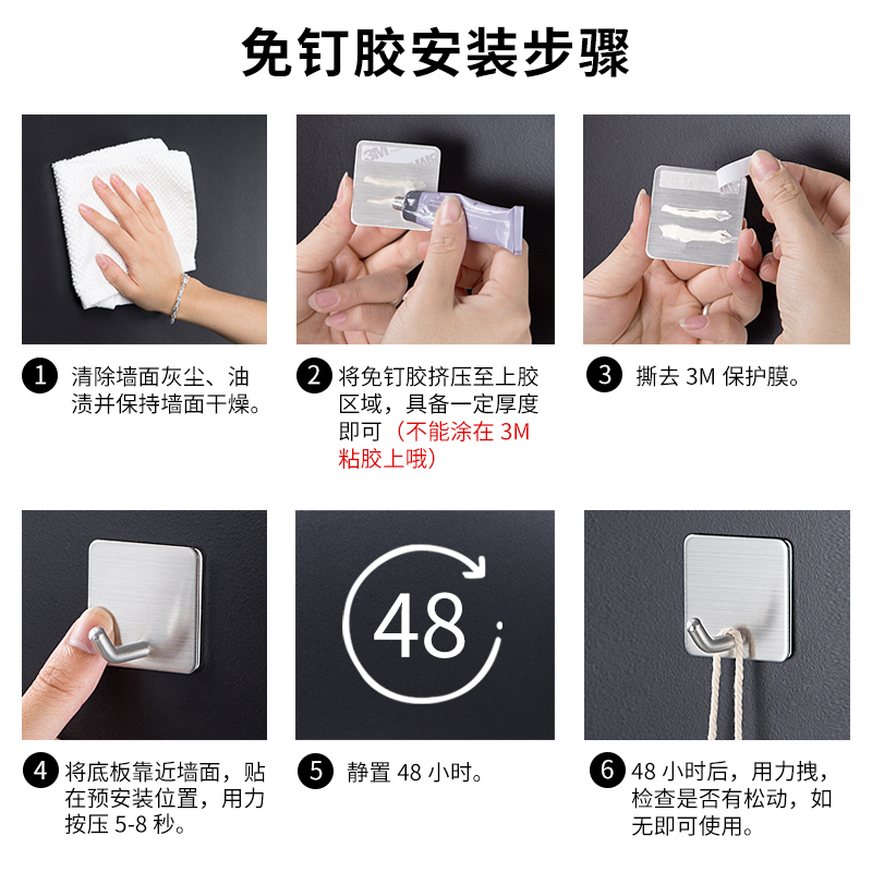 Hook Powerful Adhesive Make-up Room Wall-mounted Kitchen Strong Stick hook wall hanging stainless steel hooks Single free of punch