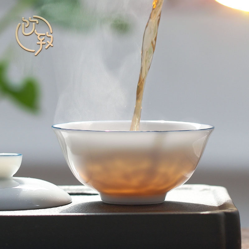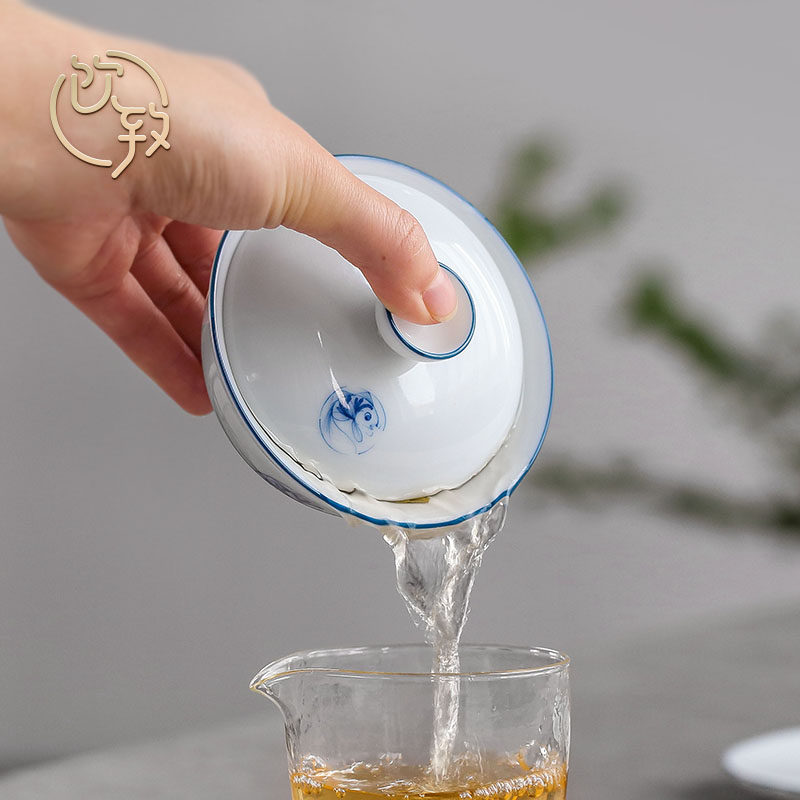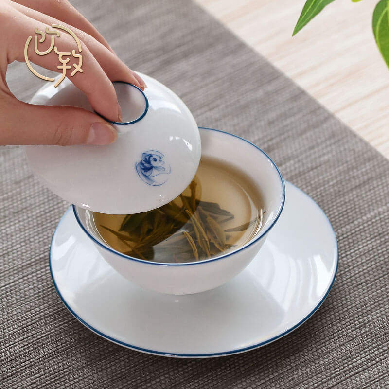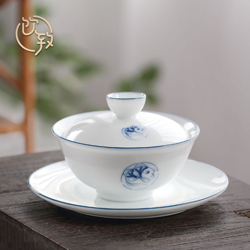 Drink To White Porcelain Hand Painted Green Flower Cover Bowl Tea Cup Small Number Handmade Thin Tire Triple Only Bubble Tea Bowl Kung Fu Tea Bowl 100ml
