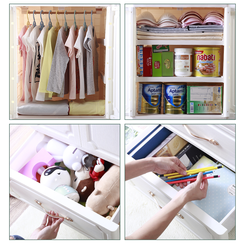Jiashii children's wardrobe baby small wardrobe drawer type double door storage cabinet plastic baby clothes locker