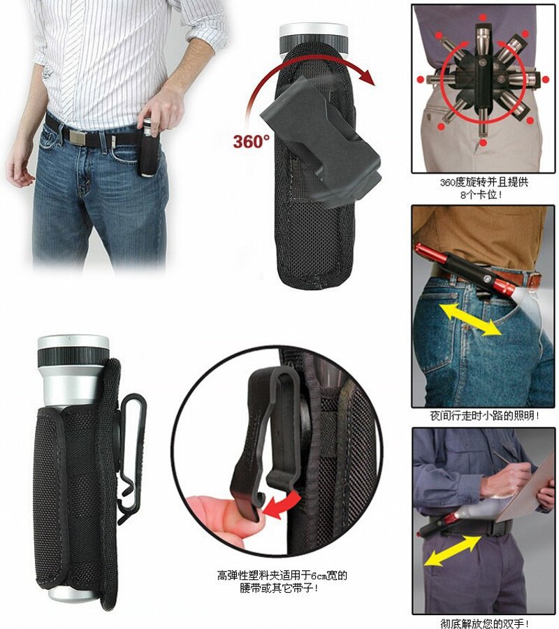 Military fan outdoor climbing riding 360 degrees Rotation Tactical flashlight sleeve Universal intense light flashlight waist hanging bag