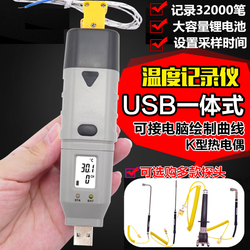 USB storage temperature recorder K type single-pass test temperature gauge thermocouple thermometer solid liquid gas tester
