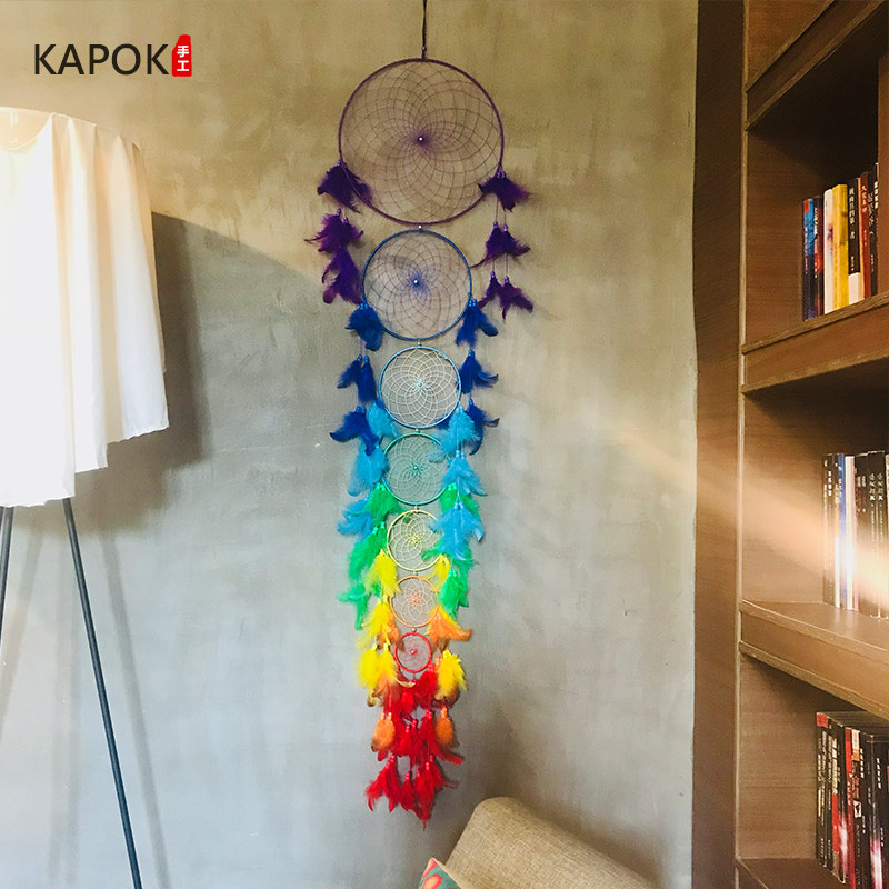 Dreamcatcher charm Indian color feather decoration pendant Creative room Dreamcatcher pendant Wind bell gift