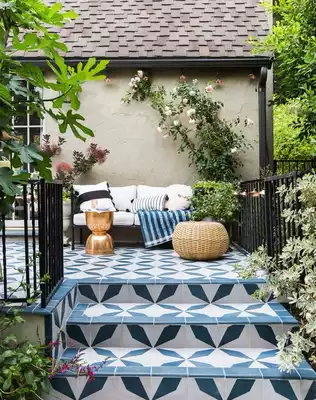 French retro small tiles 200 Nordic garden modern floor tiles Courtyard non-slip tiles Balcony flower floor tiles