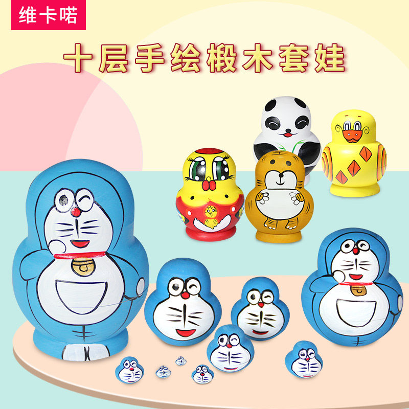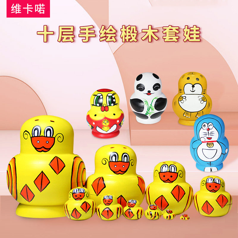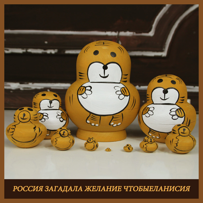 Treva 10 floors Little Tiger KT cat number Kit Va Cartoon Cute Wooden Hand-painted Children Toys Russian Sets